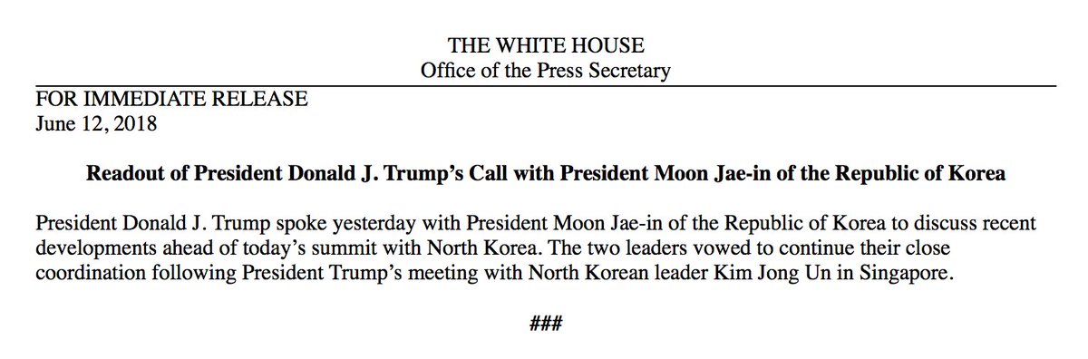 White House: President Trump spoke Monday with President Moon Jae-in of the Republic of Korea "to discuss recent developments ahead of today’s summit with North Korea.” https://abcn.ws/2l7zplP pic.twitter.com/u81AlSwhZk