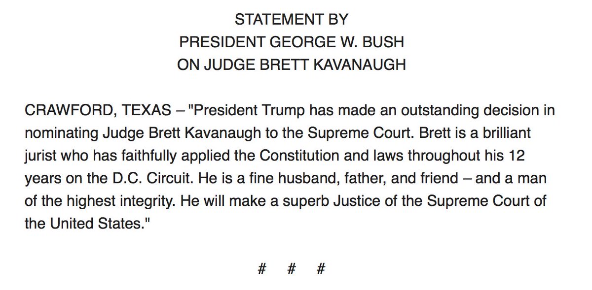 JUST IN: Former Pres. George W. Bush "President Trump has made an outstanding decision in nominating Judge Brett Kavanaugh to the; Supreme Court...He will make a superb Justice of the Supreme Court of the United States." http://abcn.ws/2KX8lnA pic.twitter.com/pb8pErHNoP