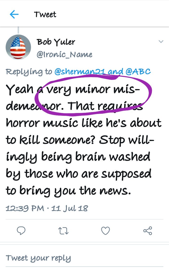 Yeah a very minor misdemeanor. That requires horror music like he's about to kill someone? Stop willingly being brain washed by those who are supposed to bring you the news.