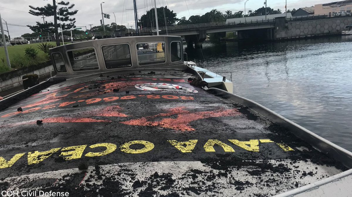 Why was this boat close enough to a lava flow? These "lava bombs" have been reported before.