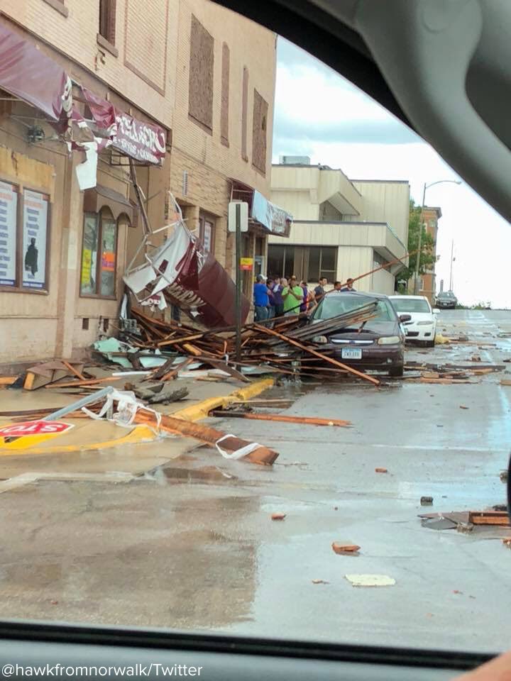 Debris goes flying as a tornado touches down in central Iowa, where several people were injured earlier today as severe storms moved through the area. https://abcn.ws/2zVmfT1 pic.twitter.com/0ZGWkemm4x