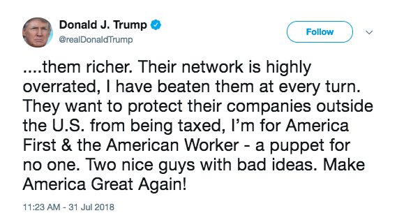Trump: “I made them richer.” He admits he made the Koch brothers richer, just like the 1% who pocketed the Trump Tax Cut Scam, leaving the hard-working class holding the bag.