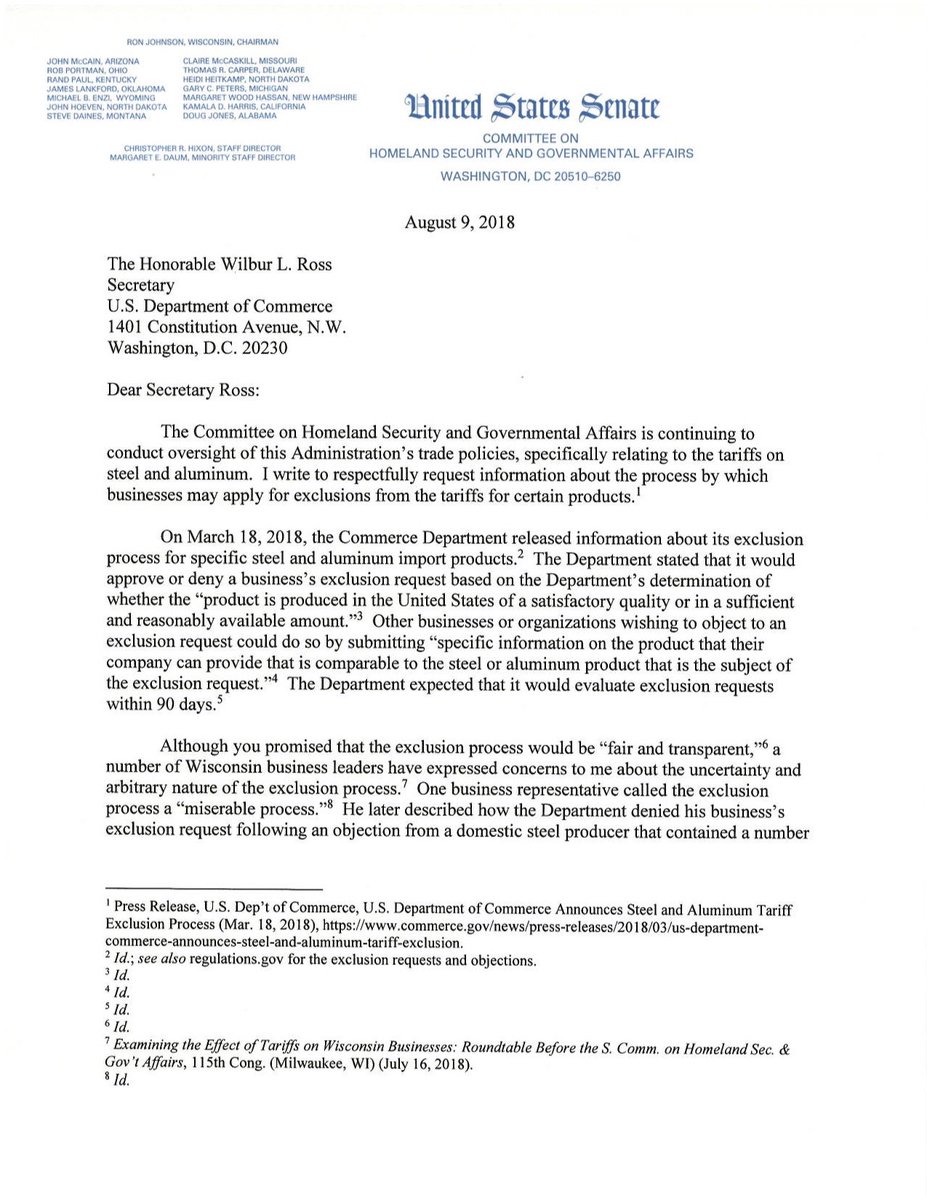 Congress should vote to just put a stop to all Tariffs, there should be no exceptions to any company if these are in place. So it is either all or none, no favoritism no exceptions.