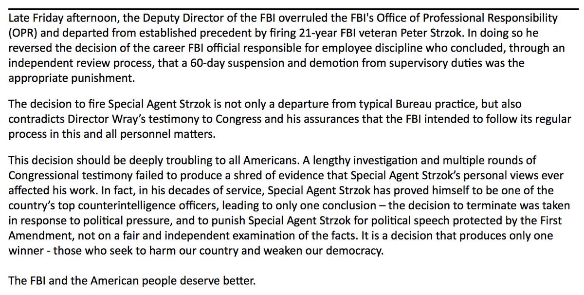 MORE: Strzok's attorney calls his firing a "departure from typical Bureau practice." "This decision should be deeply troubling to all Americans." http://abcn.ws/2KNXYOU pic.twitter.com/qiLOTOt69P
