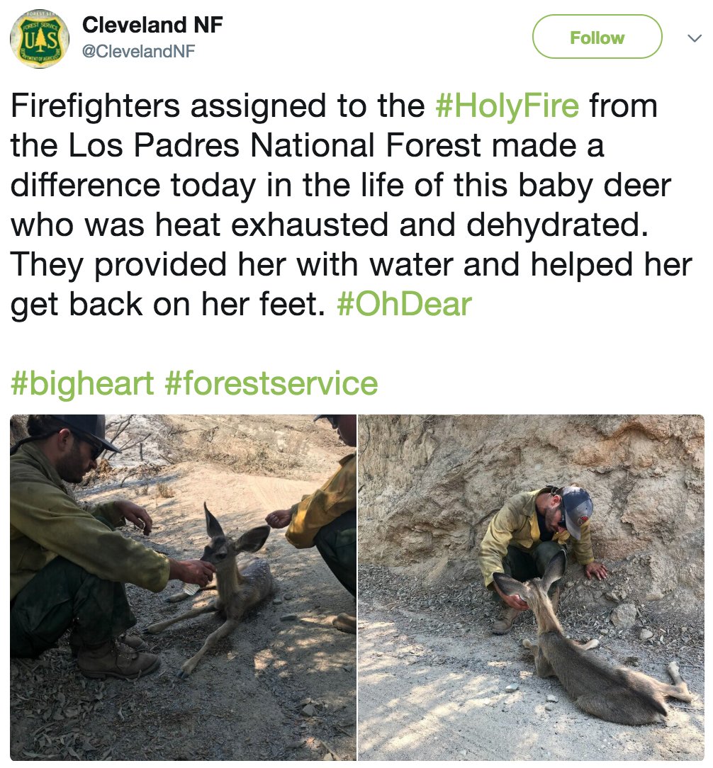 Animals are fleeing from these fires as well as humans. They are afraid, confused and possibly hurt. They don't know where to go. Please keep your pets inside and leave water out for the ones who wander in your yard.