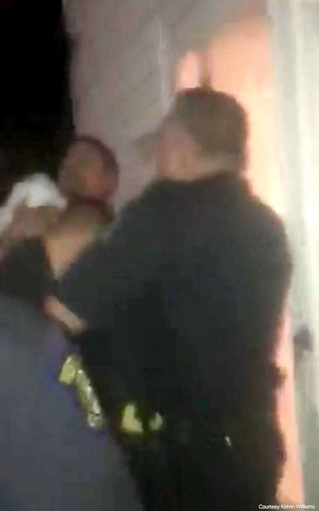 a hole getting into an stupid argument with cops holding a baby. Should be charged with child abuse.