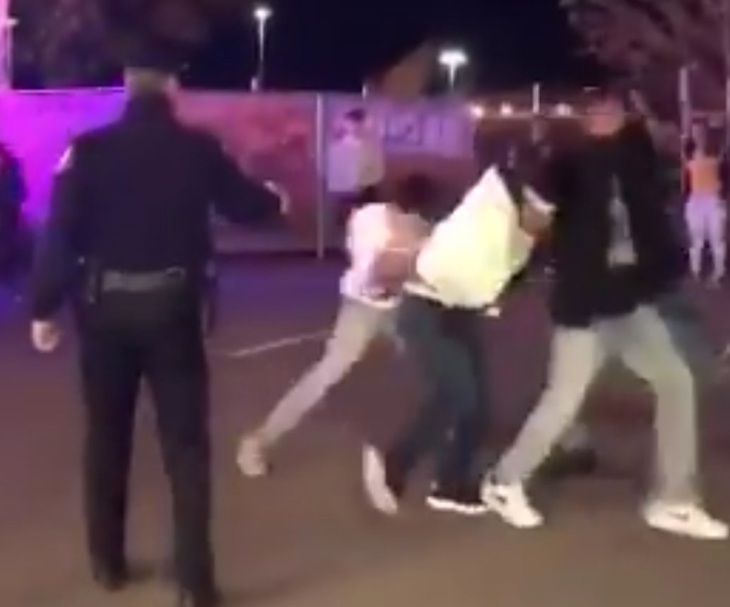 Big deal. The young man was the one that initially attacked someone from behind, and then the cop orders him to stop and get down, which he refuses. Those two actions infer he's more threatening to the situation and needs to be subdued. This seems to be a totally legit response.pic.twitter.com/0y5PXkOBGi