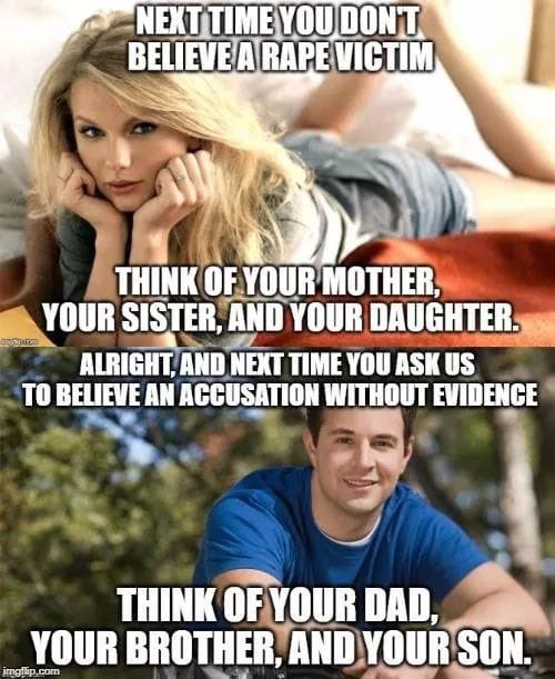 What women? Just women in general? Women that have no proof you believe them no matter what evidence right is that what you’re saying