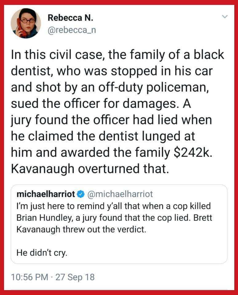 The spin here is mind boggling - a man with a sterling reputation accused of sexual assault, accused of being involved in drugging and raping young woman.. Is too emotional to sit on the court! The desperation of the left is destroying a good man's life - shame on #ChuckShumer