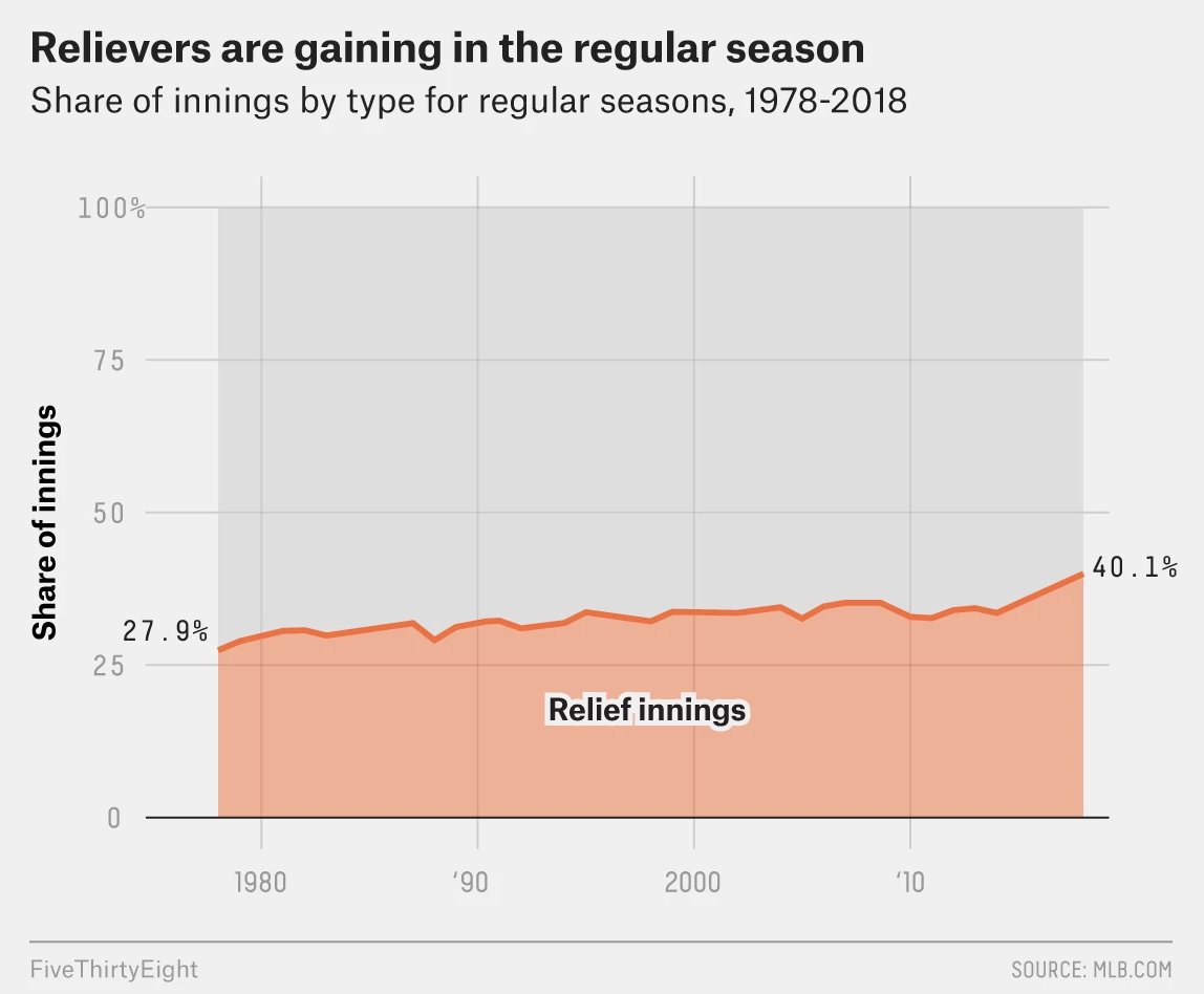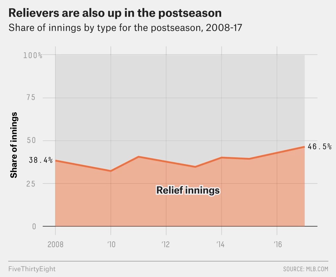 This MLB postseason, and in particular this wild-card round, might represent a tipping point in pitching strategy. Via @FiveThirtyEight: https://abcn.ws/2IxwrS9 pic.twitter.com/VDnxAIMb78