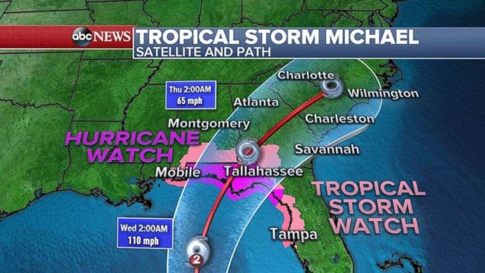 Tropical Storm Michael strengthens overnight and nears hurricane-force winds as it sets its sights on the Florida Panhandle. https://abcn.ws/2PkNf1z pic.twitter.com/IeLTVbFzhz