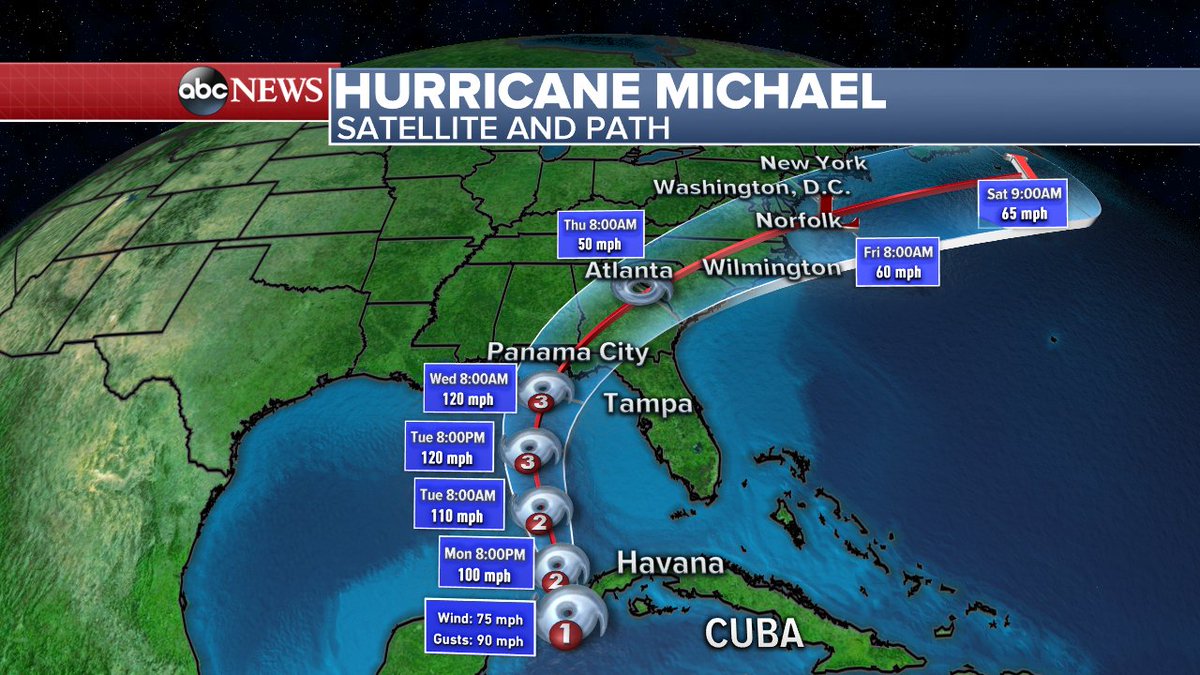 JUST IN: Michael upgraded to a hurricane after strengthening overnight. The storm is forecast to become a Category 3 hurricane when it makes landfall Wednesday afternoon. https://abcn.ws/2OLQ0vN pic.twitter.com/IT6eVK9NbE