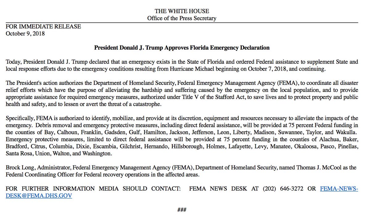 NEW: Pres. Trump approves emergency declaration for Florida ahead of #HurricaneMichael landfall. http://abcn.ws/2PqhQdY pic.twitter.com/OFNy8Wylt3