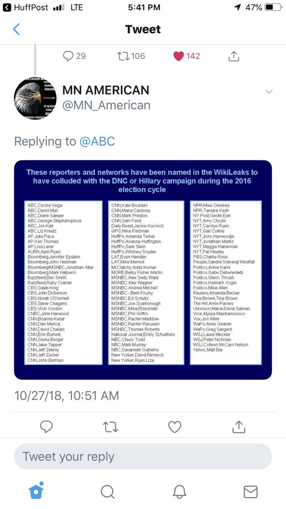 Attention Twitter: This MAGA posed a list of media for purposes of harassment. In this atmosphere, that should be taken as a serious threat. Everyone of good conscious should report it to Twitter, like I did, even though Twitter is under-staffed to handle all hate posted.pic.twitter.com/oHGXb8YiS8