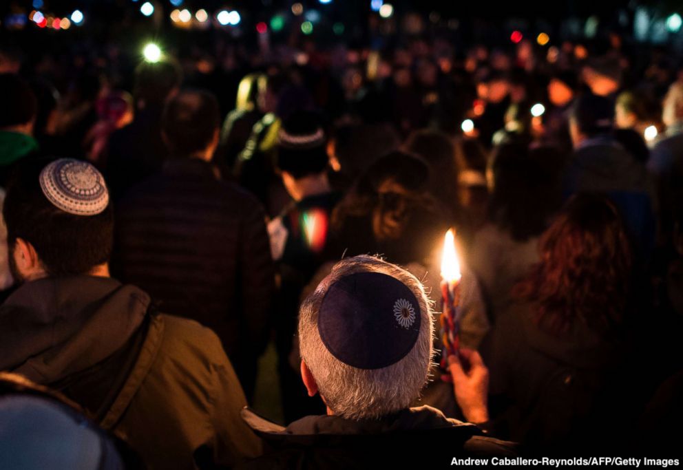 Mourners gather for a candlelight vigil in front of the White House to remember the victims of 11 worshippers gunned down at a Pittsburgh synagogue. http://abcn.ws/2DcCUCz pic.twitter.com/wyKkJbjDR2