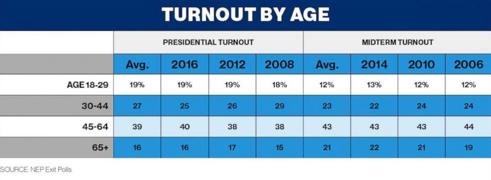 young kids only vote 20 percent of the time. We have record number of republicans voting this year. With Blexit and liberals leaving there party. Republicans registering for the first time
