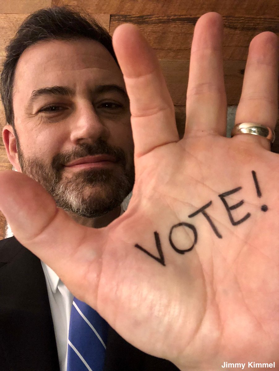 Jimmy's so smart he needs to write "vote" on his hand. This is just in case he finds himself aimlessly schuffling down the street mumbling something about Trump or Howard Stern wondering where his ratings and his integrity went.