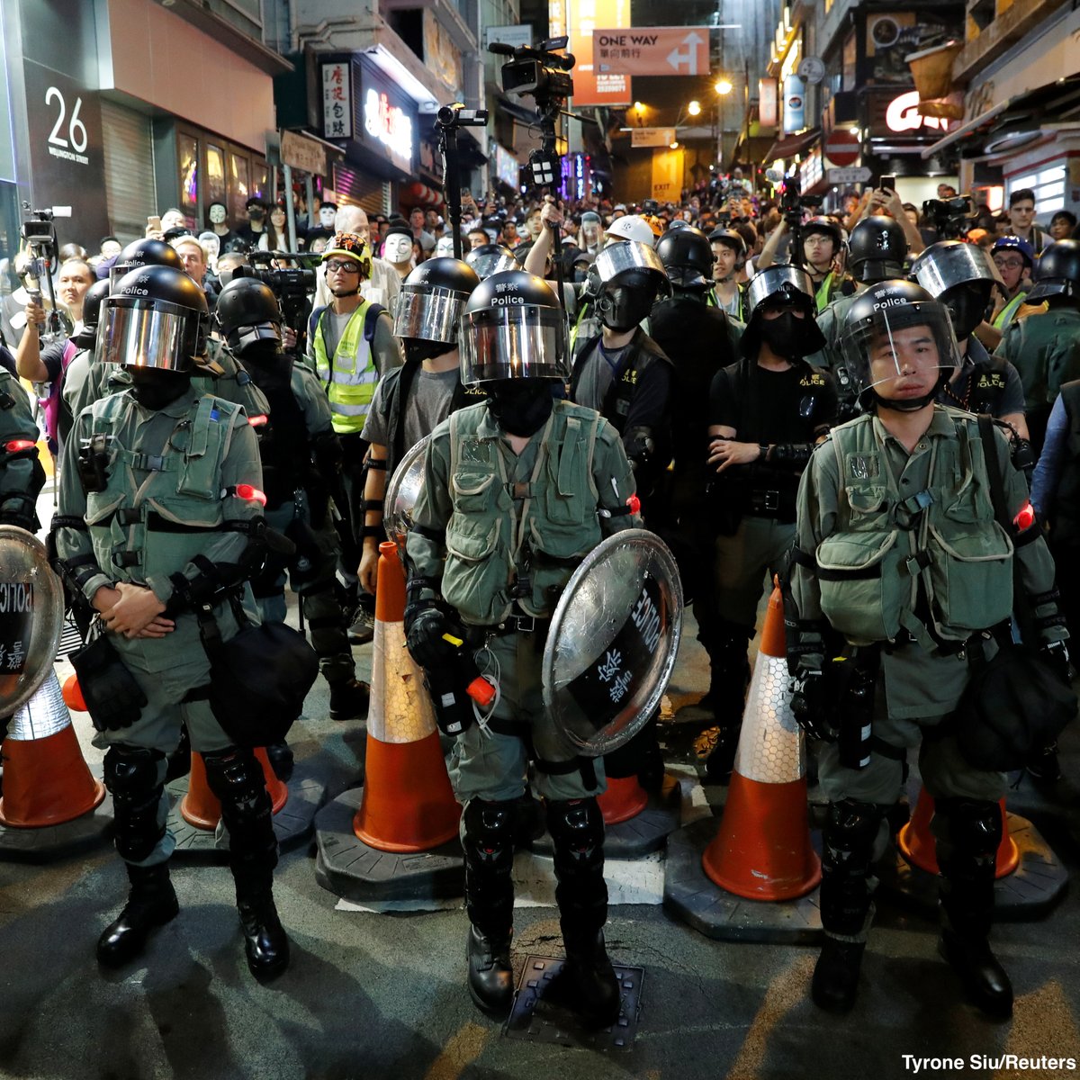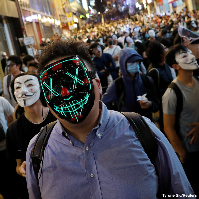 #HongKong people could do under the threat of police brutality against their freedom to protest. Plus the ‘police’ are mostly wear masks themselves, wearing no identification at all.pic.twitter.com/nZ2A2a6aGr