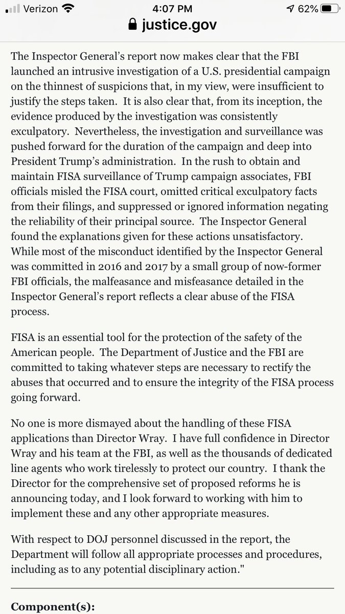The IG Report is the appetizer. Even with bias, Horowitz provided morsels of factual corruption. US Attorney John Durham and AG Barr will provide the main course and dessert. I believe it’ll be satisfying, filling and absolutely delicious.