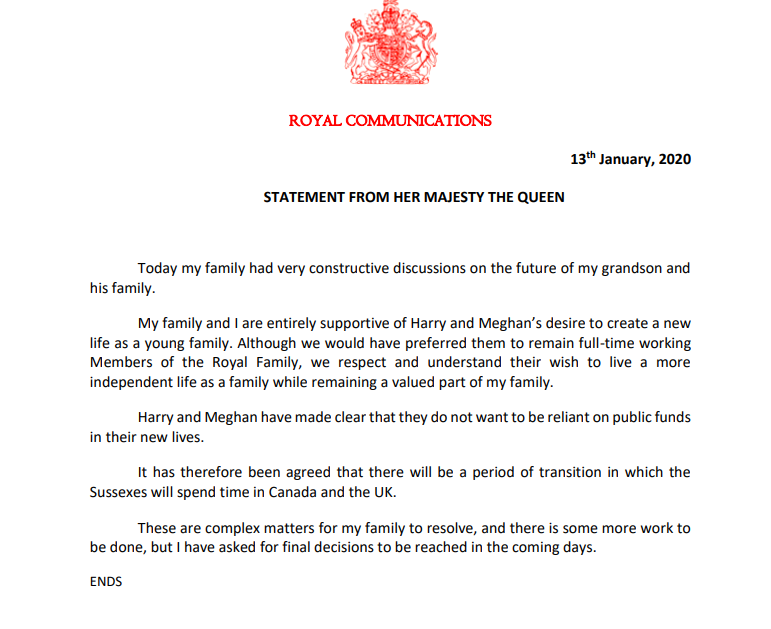 Queen Elizabeth announces "period of transition" for Prince Harry and Meghan after meeting at Sandringham.https://abcn.ws/3a5mZTr