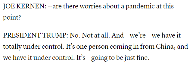 Don't worry. Trump says he's got it under control. In other words, start worrying.pic.twitter.com/NtxgT6rBy7