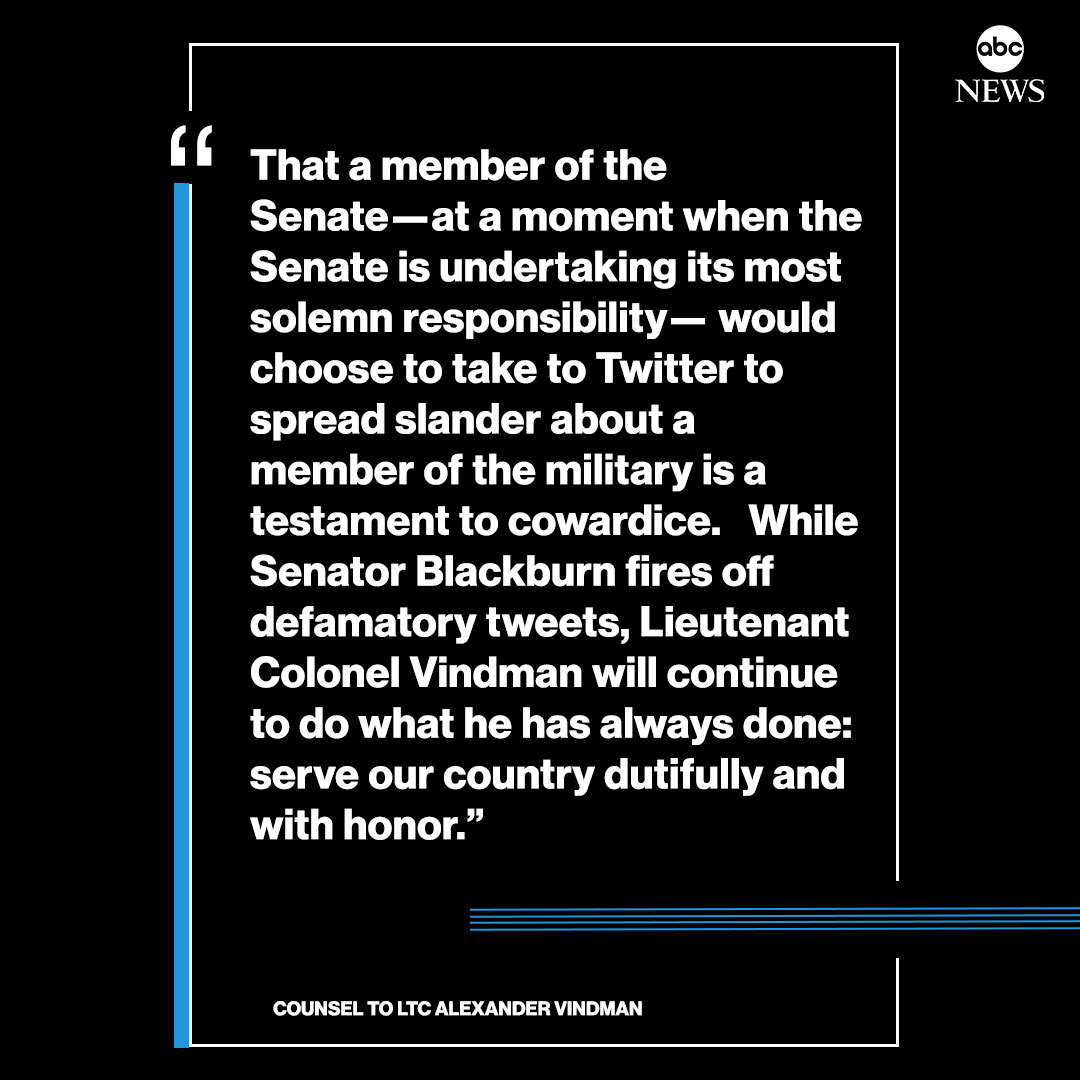 Thanks & respects to Lt. Col. Alexander Vindman. Marsha Blackburn is overdue for replacement.