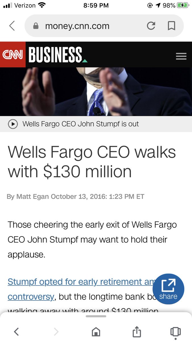 $17 million, WOW sounds like a lot, most folks dont know he left Wells Fargo with $130 million.