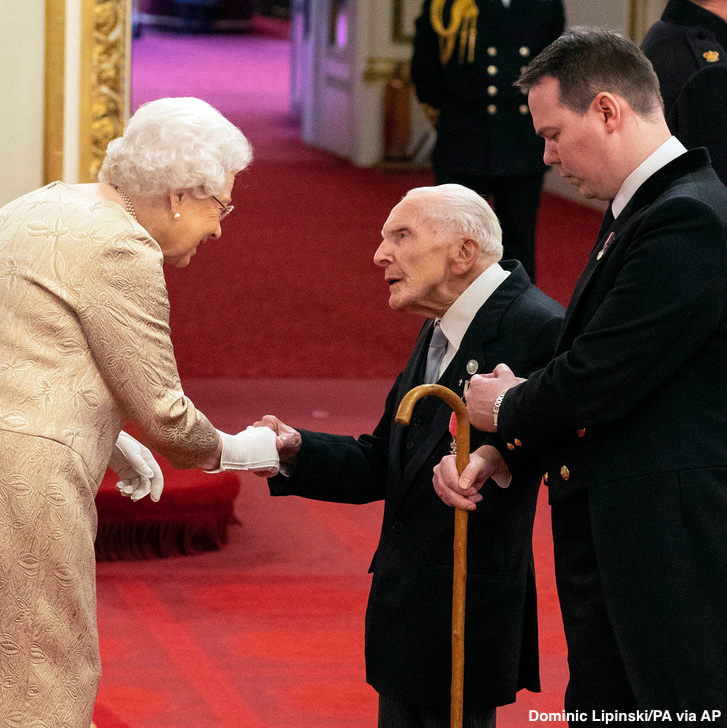 She usually hands out the honours without gloves, as she carries out the fiddly task of fastening the awards to a hook on the recipients' lapels.