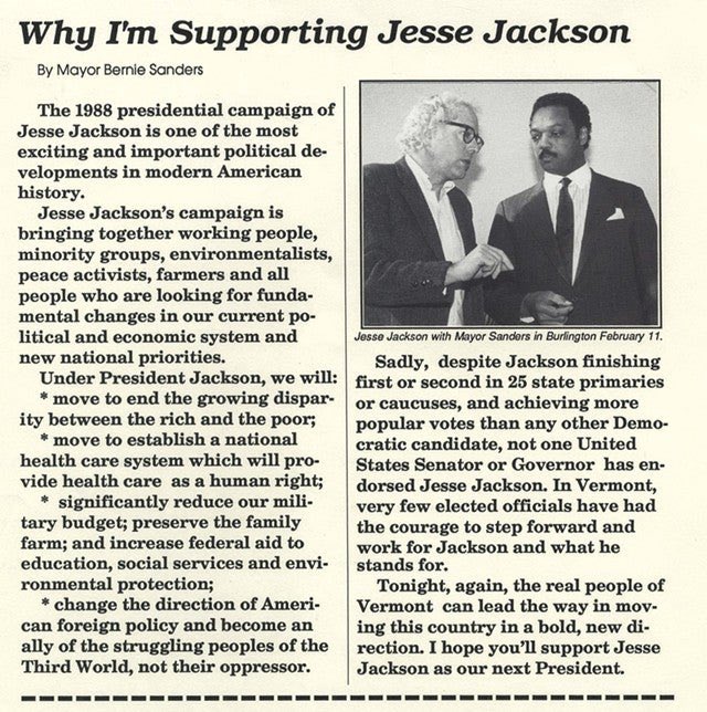 Jesse Jackson is loyal to his friend Bernie Sanders who also supported him and the cause in the past?