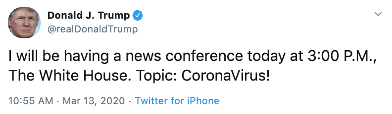 There will be an outbreak on twitter while Trump talks about the coronavirus outbreak