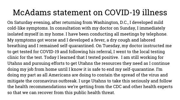 First they get an earthquake then news that their representative has covid-19. Poor West Jordan.