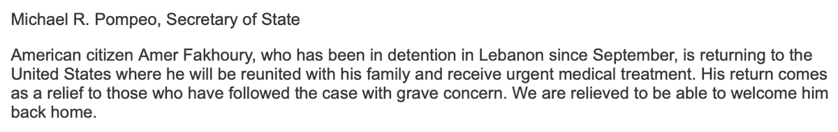 “Today we are bringing home another American citizen,” President Trump says, announcing that Amer Fakhoury, who is battling cancer, is on his way back to the U.S. after being imprisoned in Lebanon. https://abcn.ws/2IWK4eQ pic.twitter.com/LiPRnIvXA7