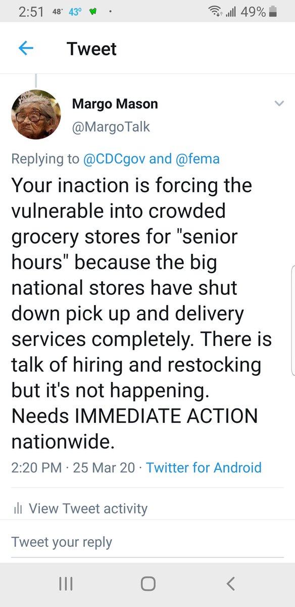 A 70-year-old living alone needs to go shopping. If you're a wealthy single, you can ask others to shop and deliver. However, poor living alone has to go shopping. Since there is no face mask, shopping must be done when shoppers are few.