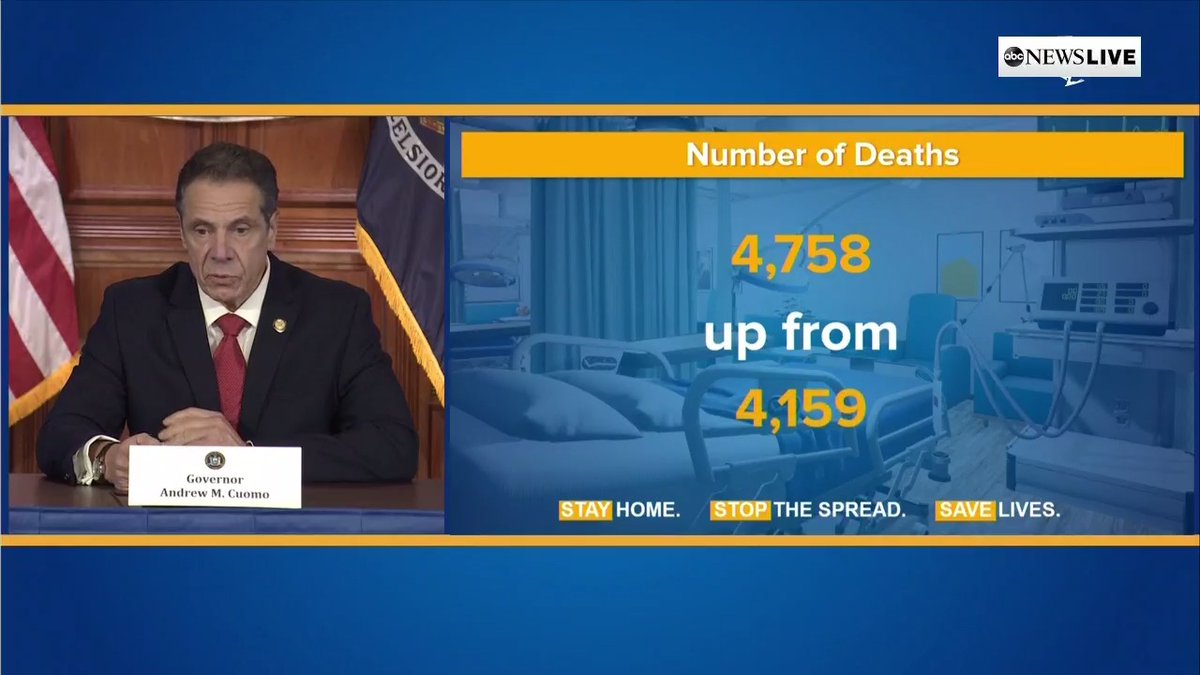 LATEST NEW YORK NUMBERS: https://abcn.ws/2V9g3Or Confirmed cases: 130,689 Currently hospitalized: 16,837 (358 new) ICU patients: 4,504 (128 new) Patients discharged: 13,366 (1,179 new)pic.twitter.com/a7fjYTdE5o