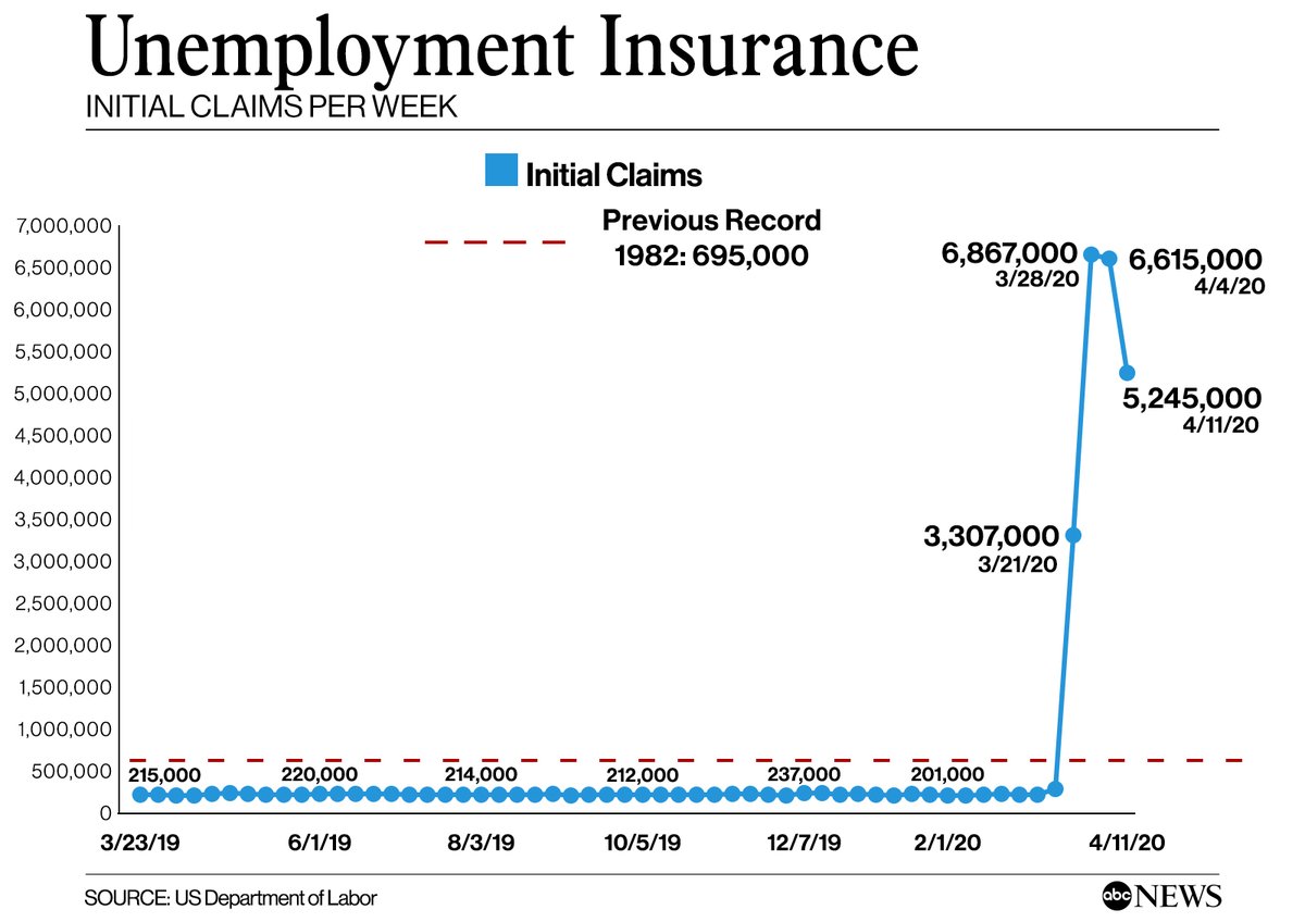 BREAKING: 5.2 million more Americans filed for unemployment last week, according to the Department of Labor. More than 22 million have filed for unemployment in a month amid the COVID-19 pandemic.https://abcn.ws/2K9lSGD