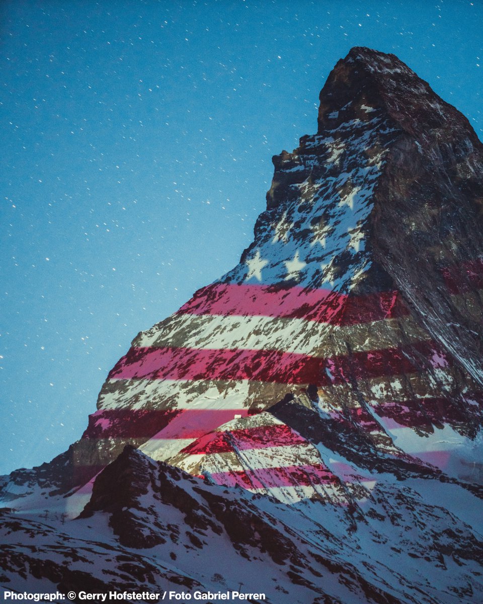 The American flag is projected onto Switzerland's famous Matterhorn peak in a display of solidarity with all the countries affected by the coronavirus crisis.
