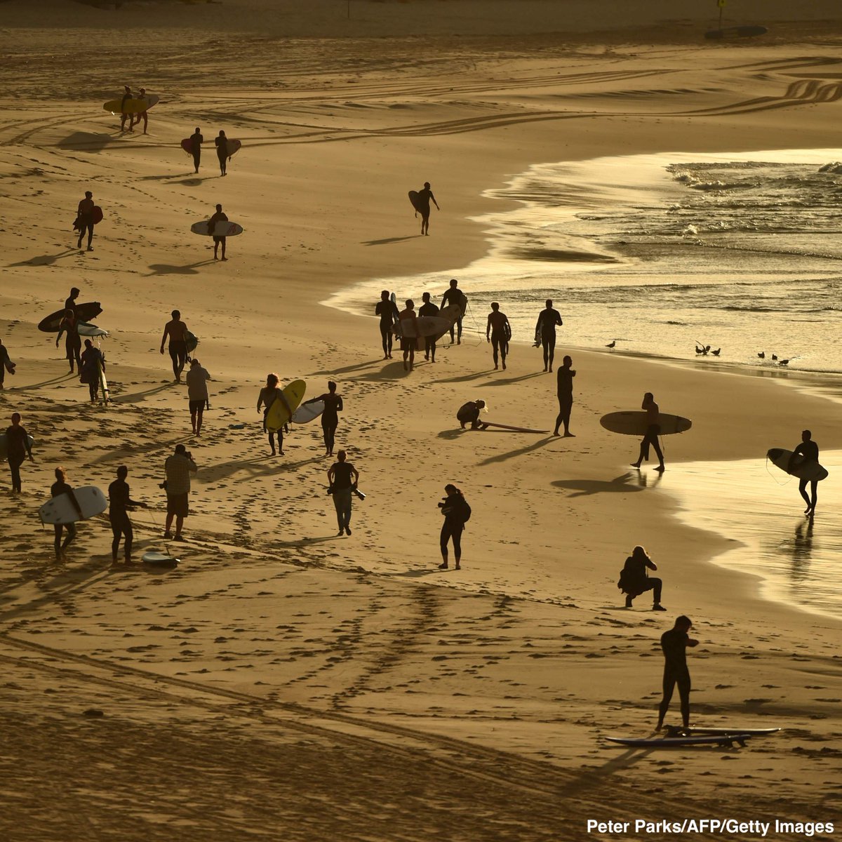 Surfers and swimmers hit the sand after Bondi Beach reopens in Sydney, Australia, following a five-week closure amid the COVID-19 pandemic. Some warn warmer weather will tempt many into taking part in summer activities—hampering mitigation efforts. https://abcn.ws/3bKjxhv pic.twitter.com/IcdU2LIsy4