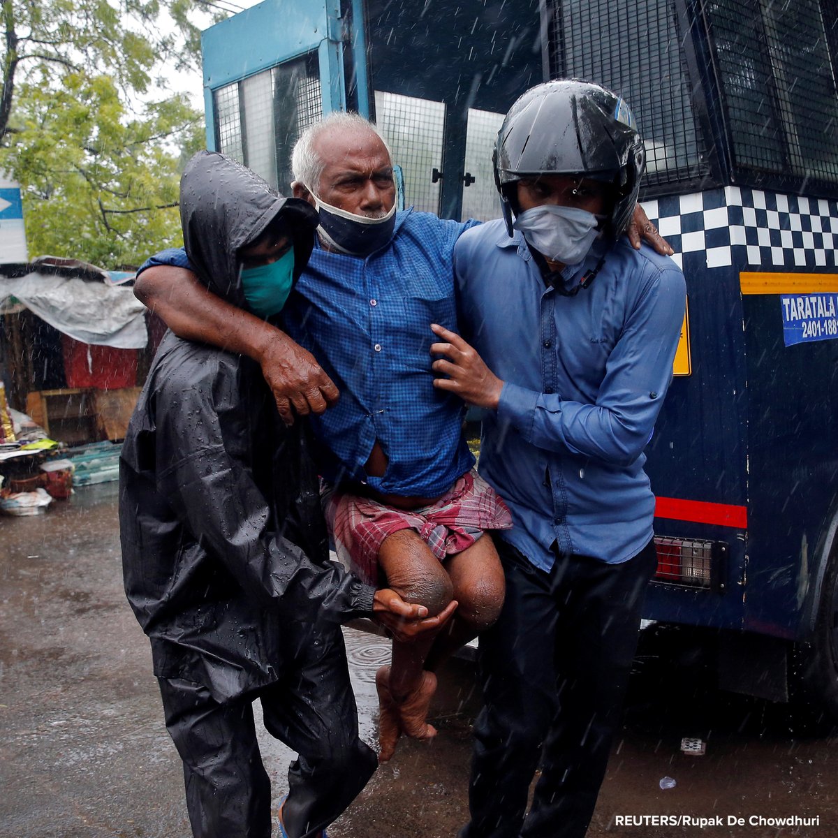 📸: Police officers carry a disabled man to safety following his evacuation from a slum area before Cyclone Amphan made its landfall in India. https://abcn.ws/3g9A9SB pic.twitter.com/QXHVssX32z