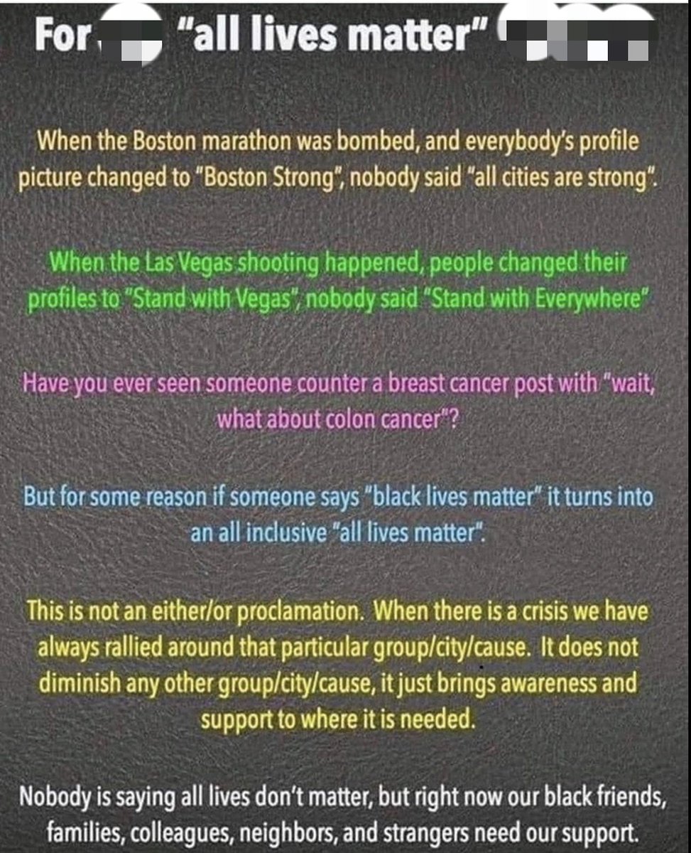 Let me give you a hint. When they say all lives matter it only means means whites. Although that alone would be considered racist.
