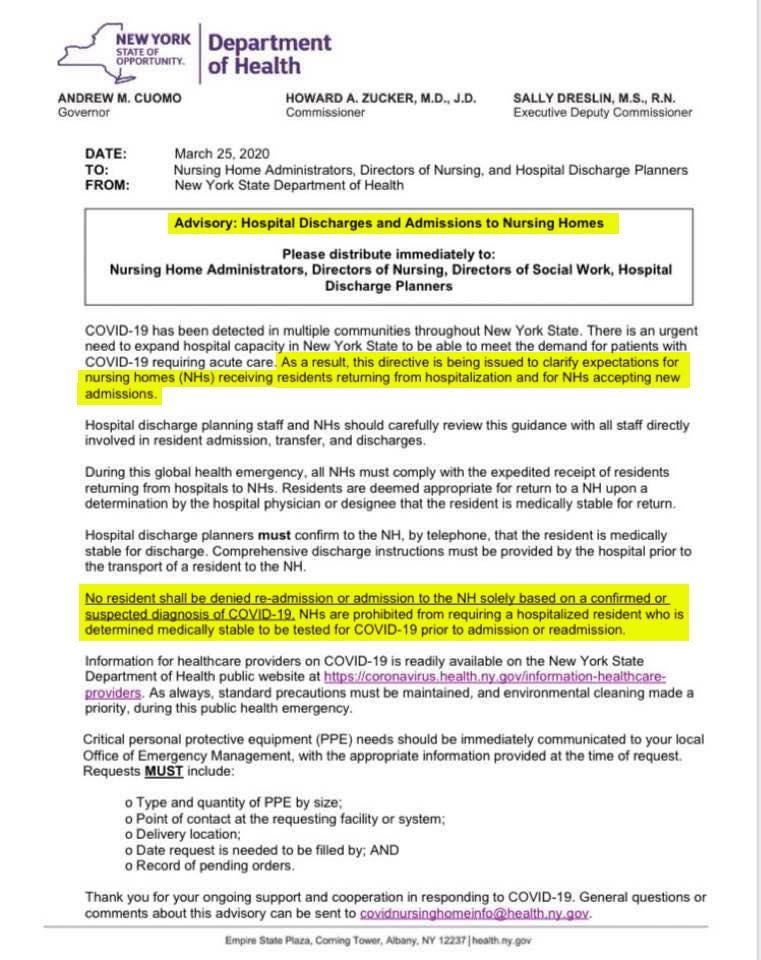 Says the guy that is trying to kill off the Senior Citizen community in New York. We demand answers.
