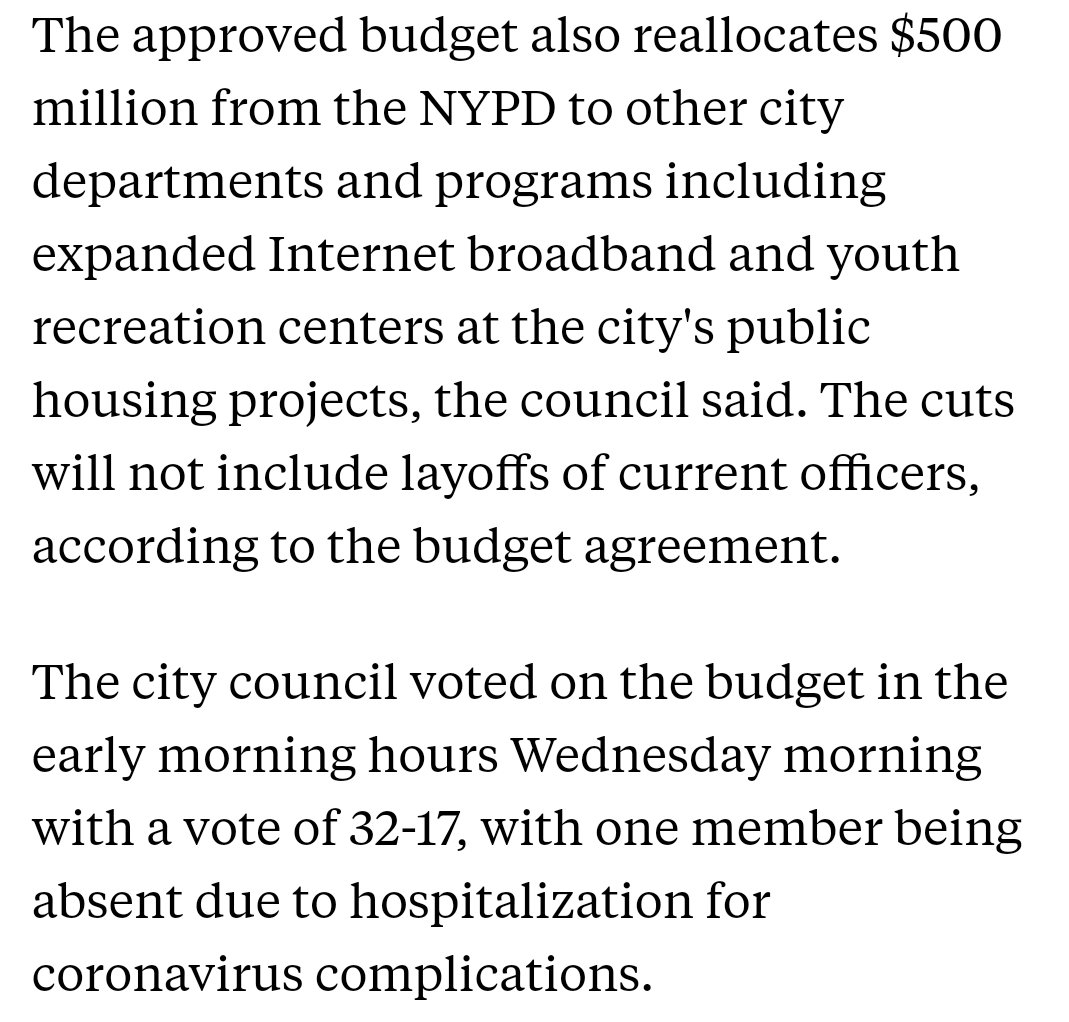 This is very misleading as they shifted the burden of paying for officers in schools to the dept of education. Net effect to police budget is approaching $0.