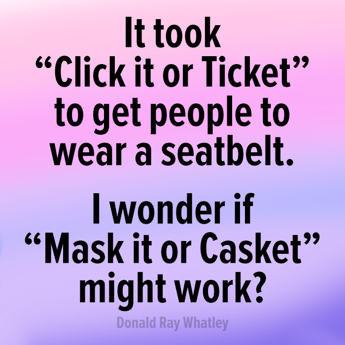 I wear a mask because someone I don’t know could be high risk. I do so, out of respect for others.