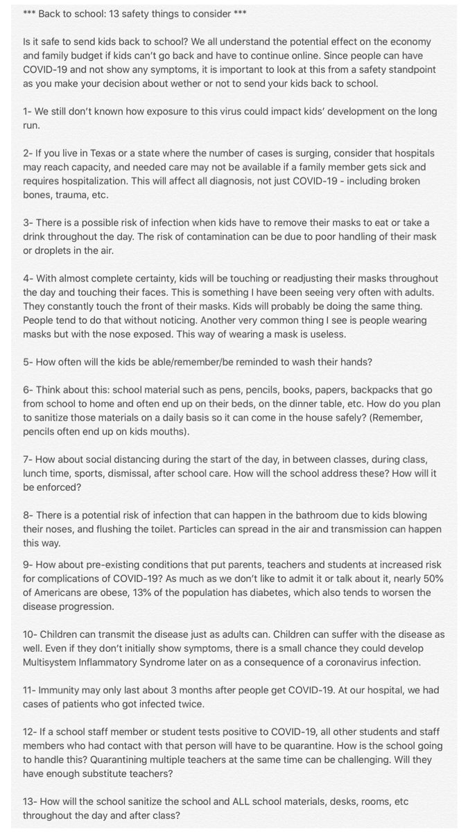Parents! Here are 13 things to consider when deciding to send kids back to school: #covid19pic.twitter.com/uj1XcFHxuK