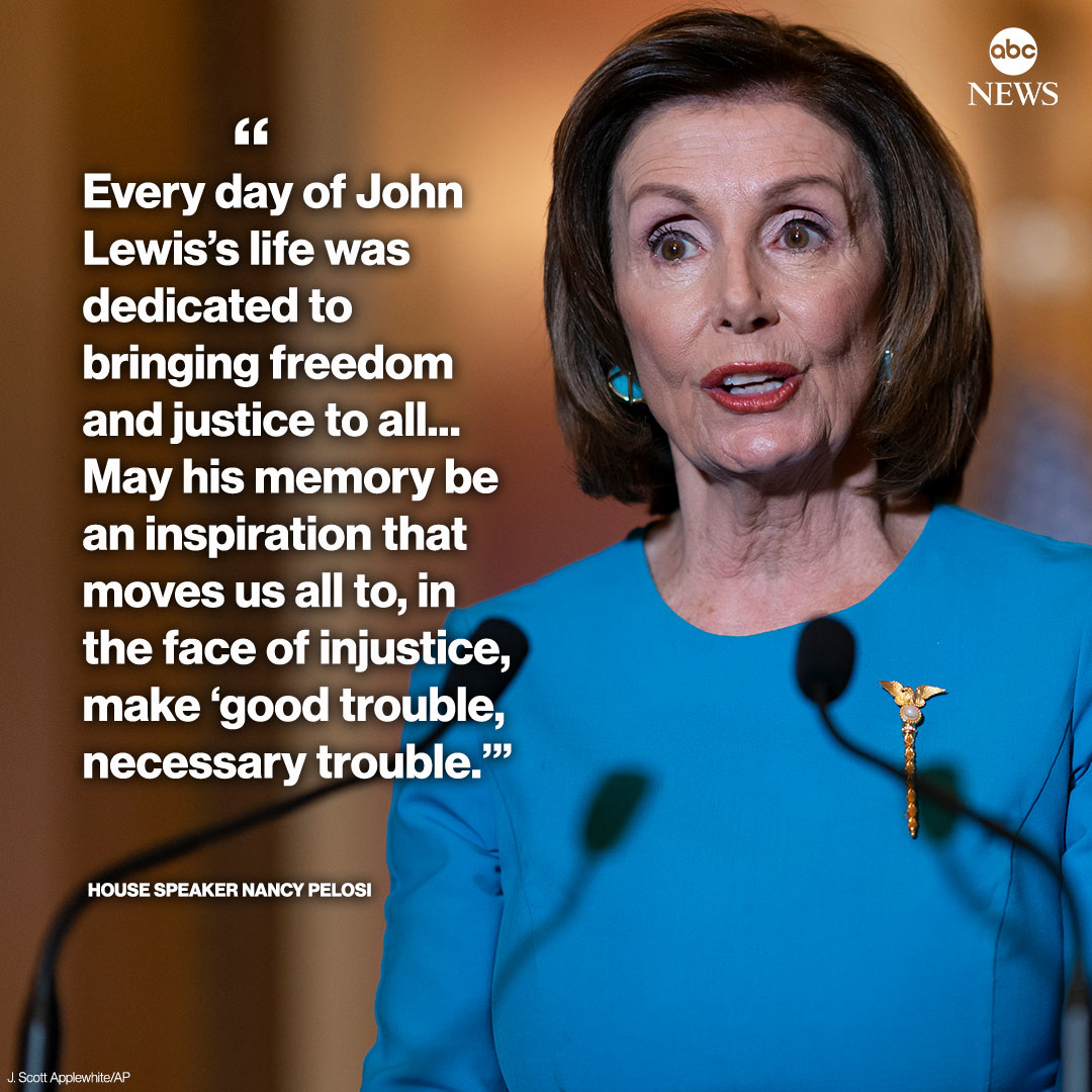 BREAKING: House Speaker Nancy Pelosi: “Today, America mourns the loss of one of the greatest heroes of American history: Congressman John Lewis, the Conscience of the Congress." https://abcn.ws/3hcWhuZ pic.twitter.com/ROuKeZtHlK