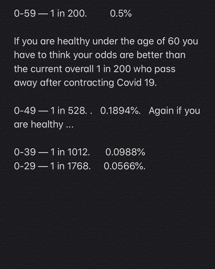 If they are older than 70 then I’m concerned. Older than 50 with health problems - concerned. Not concerned about the younger age groups because I can do simple math.pic.twitter.com/M2TbZUuItA