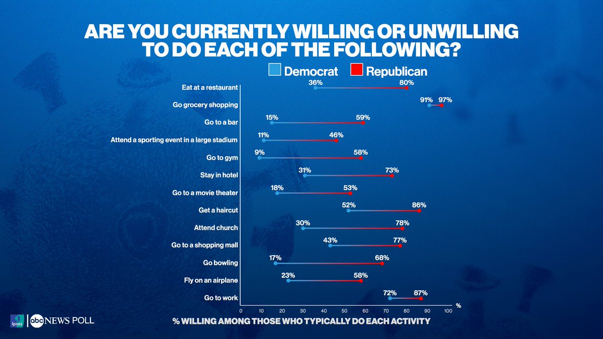 Very poorly done report by ABC. Incomplete information, size of poll, where taken. This info is not representative ...pretty much bullshit. And for what purpose? To incentivize people to go? More like a disservice to those of us trying to keep numbers down.