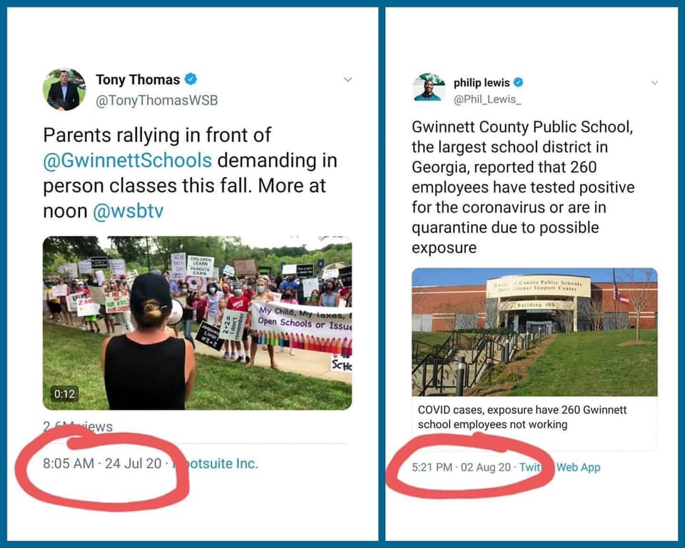 And in Arizona, this is horrifying: •1 teacher has already died •11% of the staff has tested positive •Teachers are begging not to have to return this month, fearing for their lives •The district will lose 5% of its funding if it doesn’t reopen on 8/17https://www.washingtonpost.com/nation/2020/08/01/schools-reopening-coronavirus-arizona-superintendent/?arc404=true …