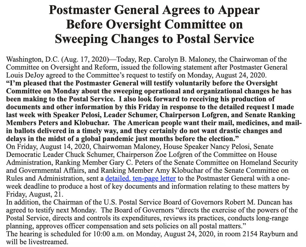 @RepMaloney please use a criminal atty to grill DeJoy. 5-minutes rounds of questioning will accomplish next to nothing. Play hardball!Thanks. Twitter will use this to make your timeline better. UndoUndo