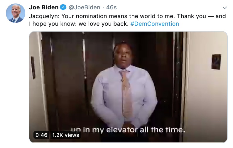 Security guard who met Biden in an elevator during the primary: "In the short time I spent with Joe Biden I could tell he really saw me, that he actually cared...Joe Biden has room in his heart for more than just himself."