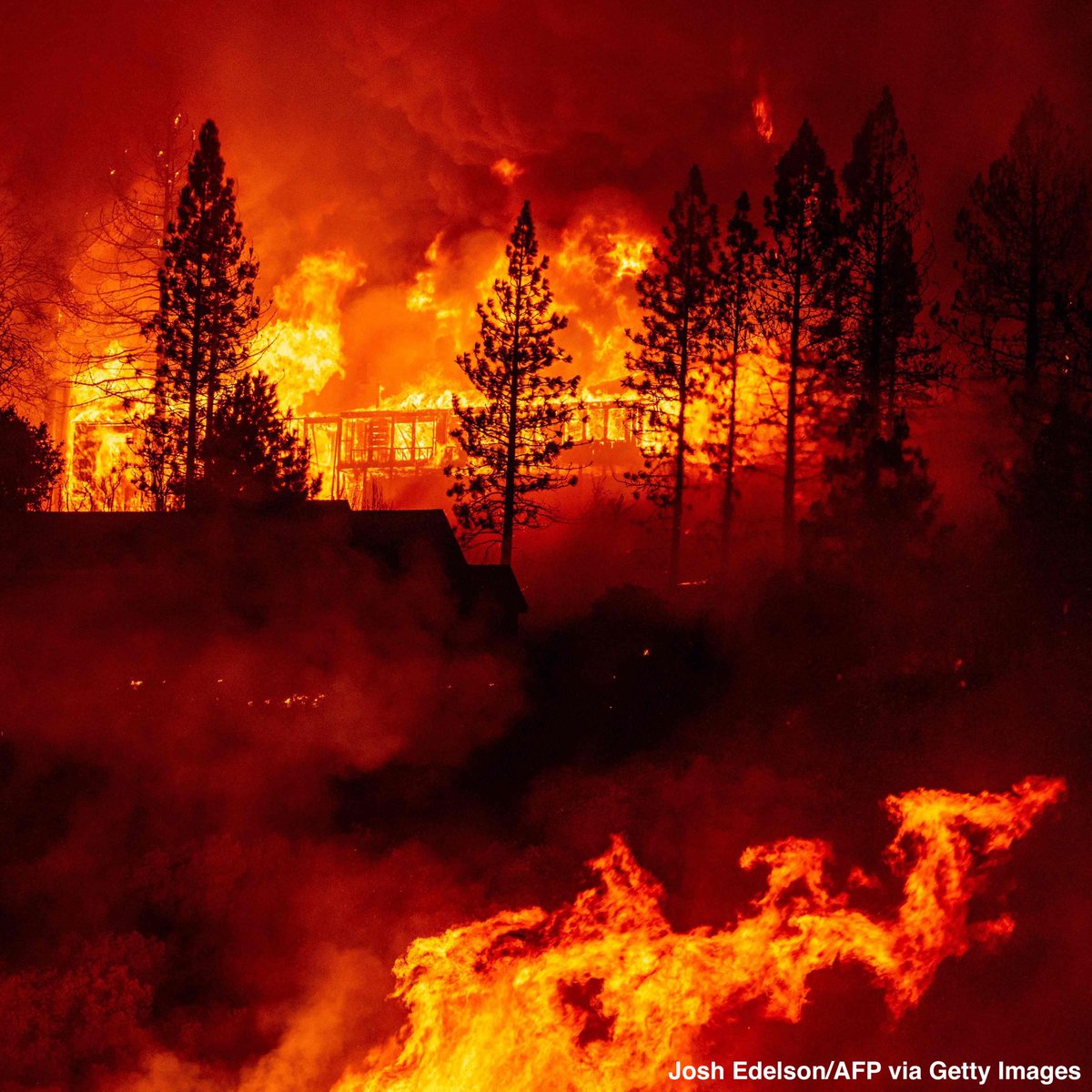 I read the article. This was the caption : A home is engulfed in flames during the "Creek Fire" in the Tollhouse area of unincorporated Fresno County, Calif., Sept. 8, 2020.
